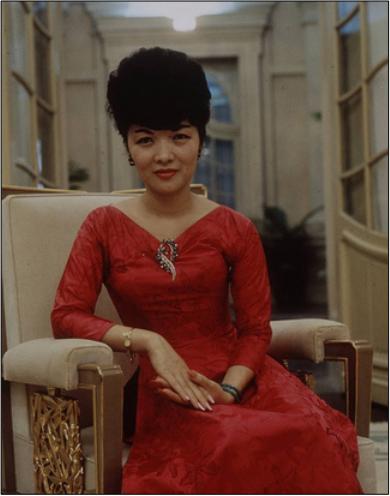 Chiếc thang máy nhỏ hẹp vừa đủ chỗ đứng cho một ông Mỹ quá khổ đưa tôi lên tầng 11 của tòa nhà cao tầng. Bà Nhu mở cửa đón khách trong chiếc áo kimono Nhật mầu xanh nước biển, khuôn mặt trang điểm kỹ lưỡng với giọng nói đặc Huế không vồn vã mà cũng chẳng quá lạnh nhạt.